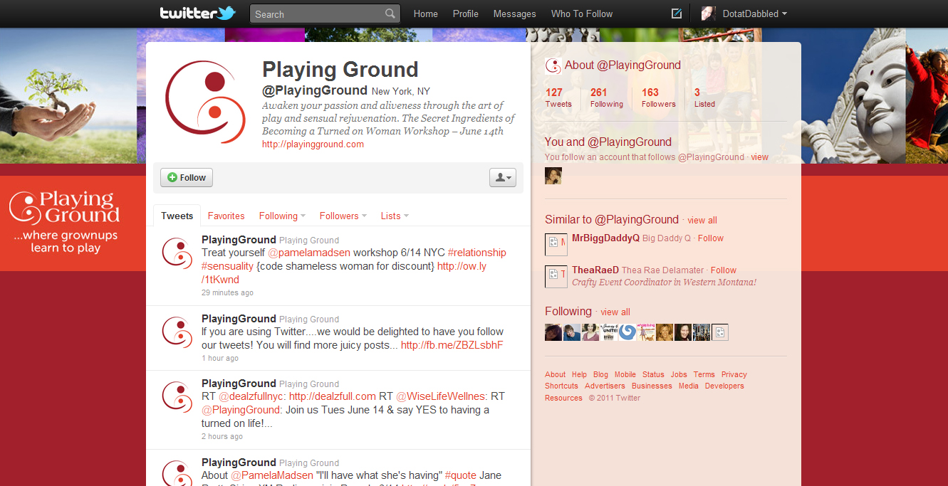 We’ve just finished up phase 1 of our latest project – A website for Playing Ground – a website devoted to awakening your passion and aliveness through the art of play and sensual rejuvenation. They offer classes and workshops, and other opportunities to just ‘play’!